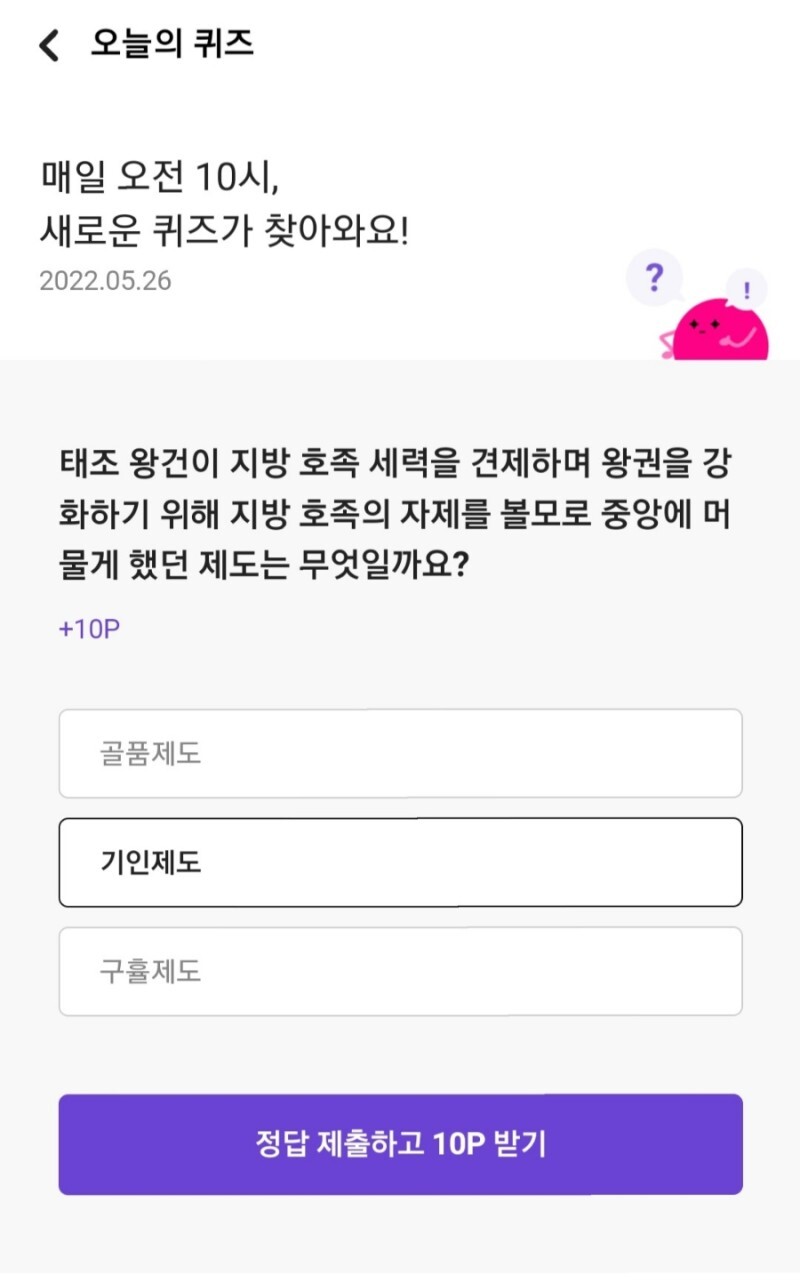Q : 태조 왕건이 지방 호족 세력을 견제하며 왕권을 강화하기 위해 지방 호족의 자제를 볼모로 중앙에 머물게 했던 제도는 무엇일까요?