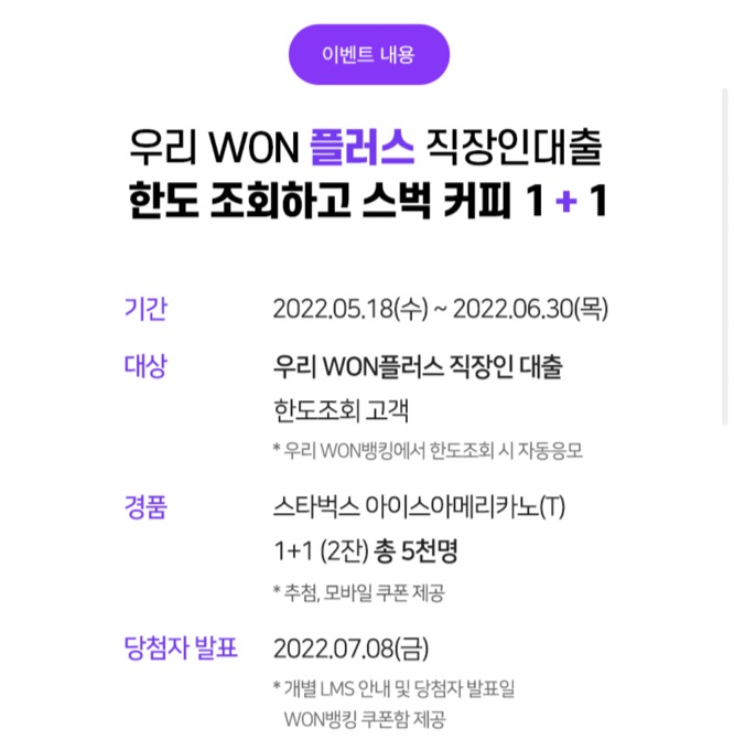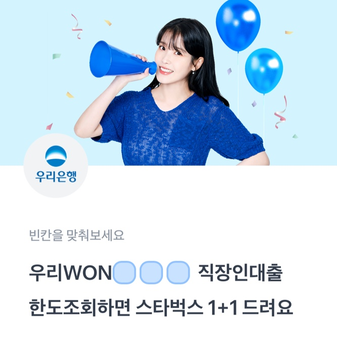 우리은행 우리WON OOO 직장인대출 한도조회하면 스타벅스 1+1 드려요