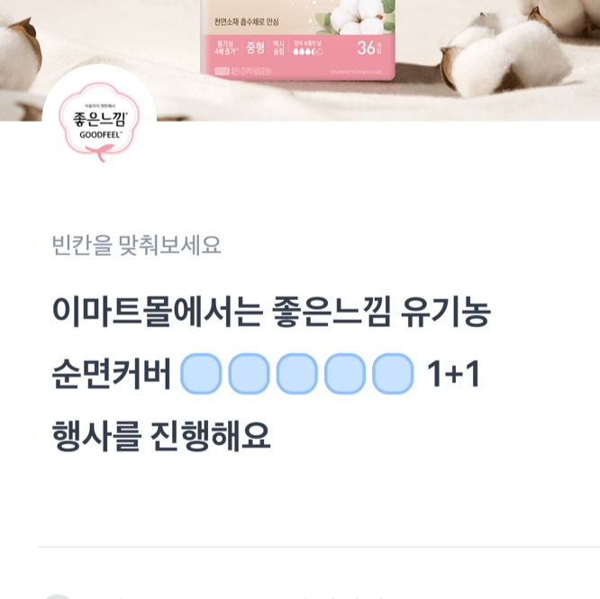 이마트몰에서는 좋은느낌 유기농 순면커버 OOOOO 1+1 행사를 진행해요