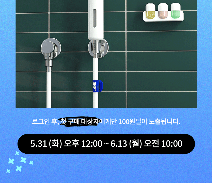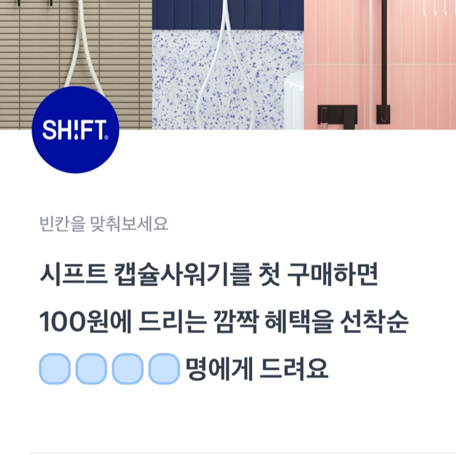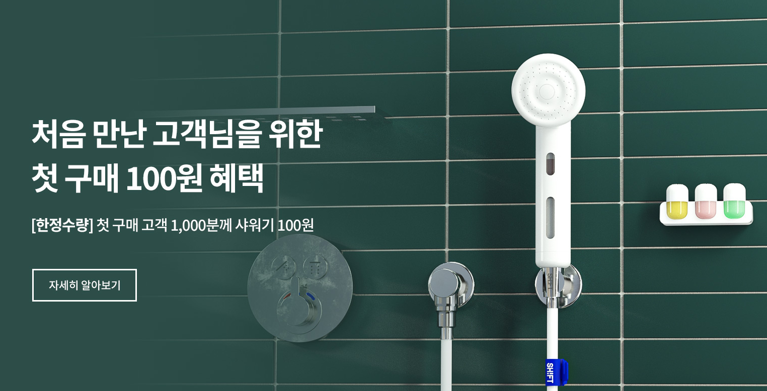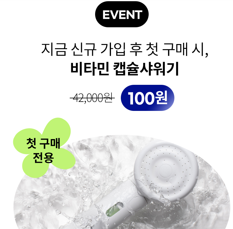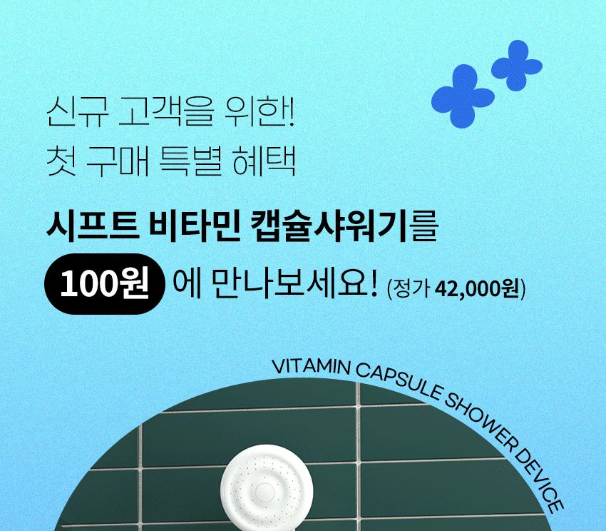 시프트 캡슐샤워기를 첫 구매하면 100원에 드리는 깜짝 혜택을 선착순 OOOO명에게 드려요.