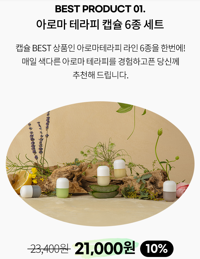 캡슐 BEST 상품인 아로마테라피 라인 6종을 한번에!