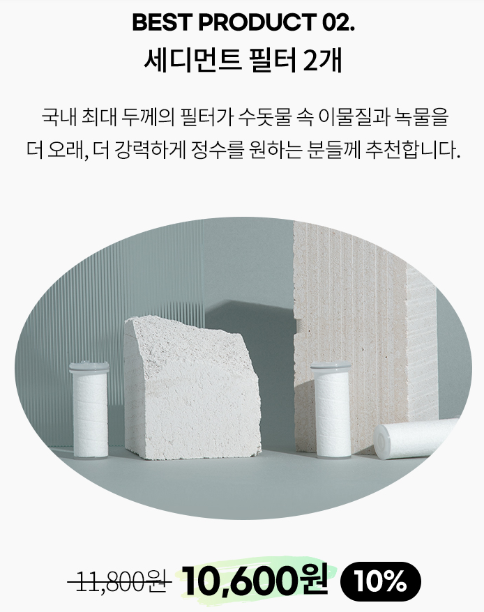 국내 최대 두께의 필터가 수돗물 속 이물질과 녹물을 더 오래, 더 강력하게 정수를 원하는 분들께 추천합니다.