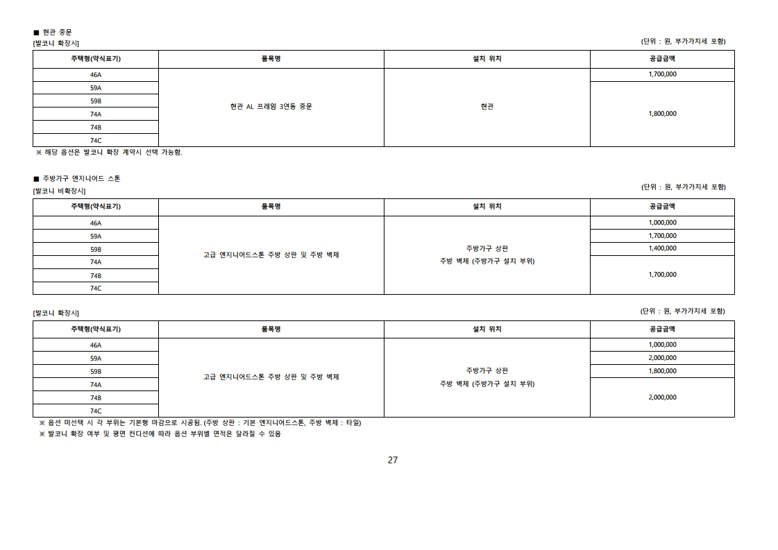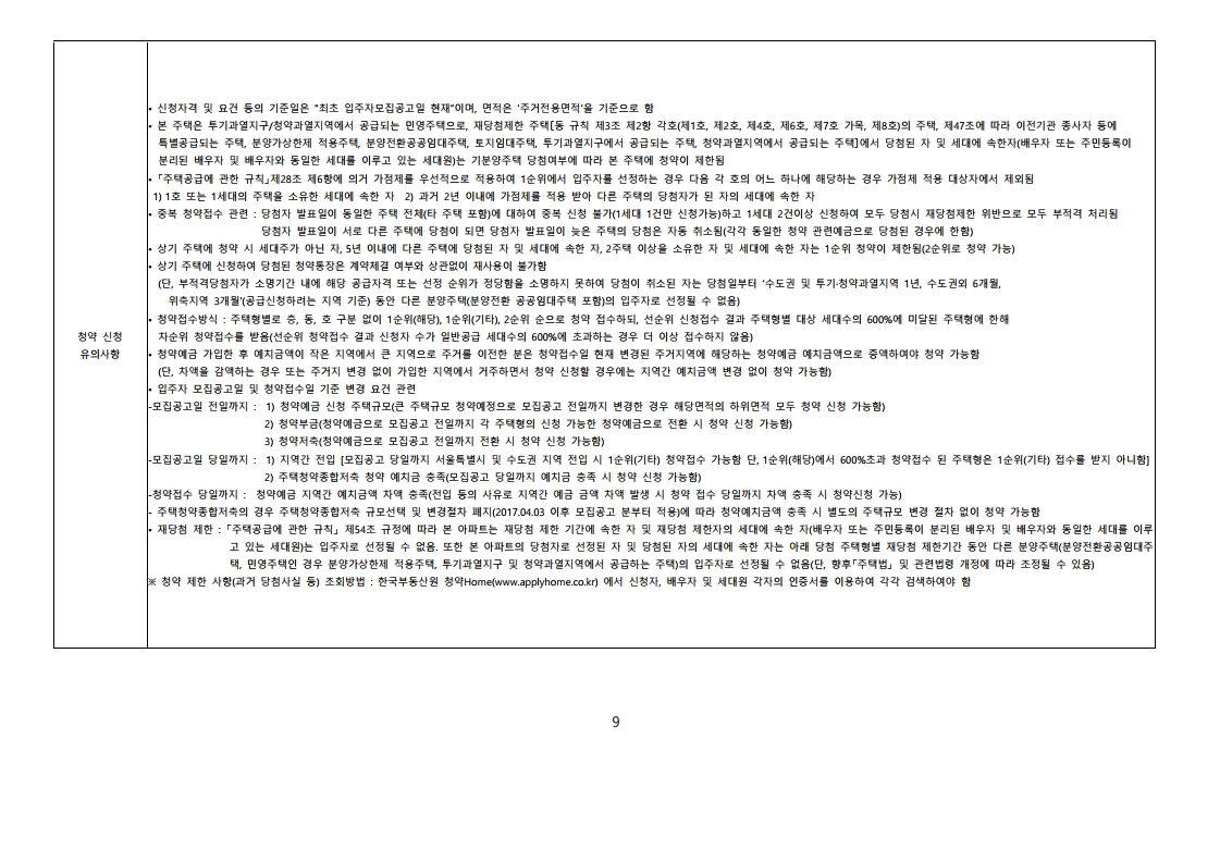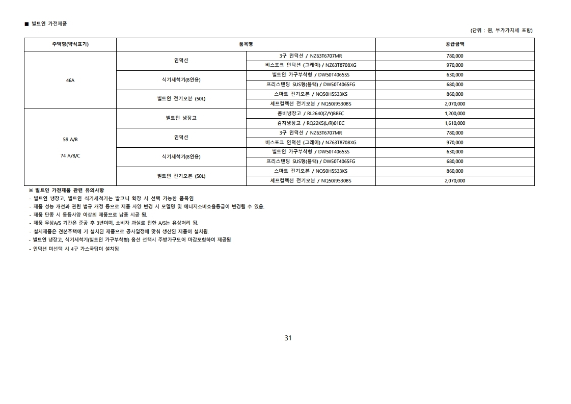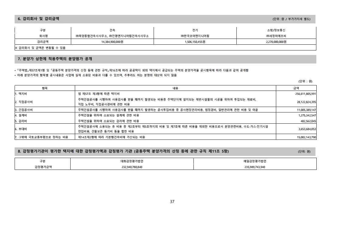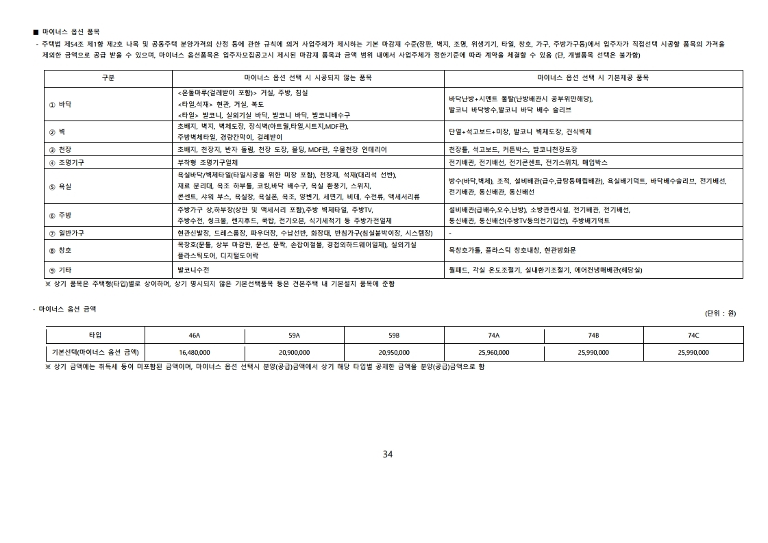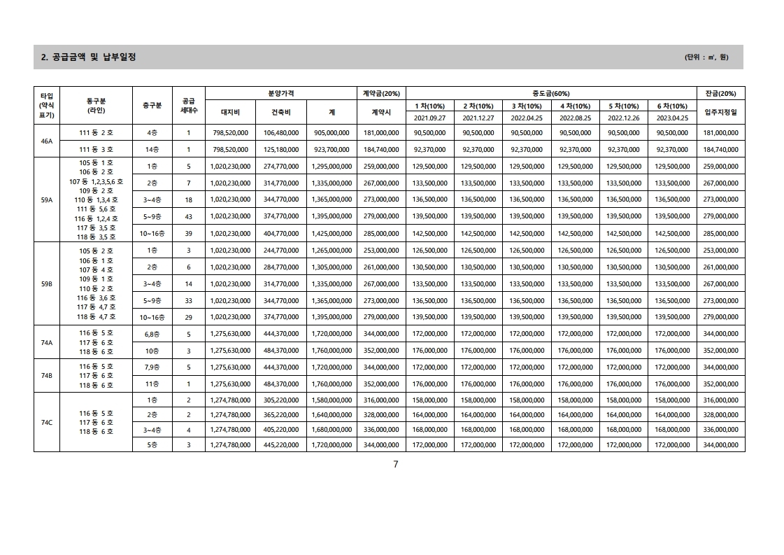입주자 모집공고문 분양가