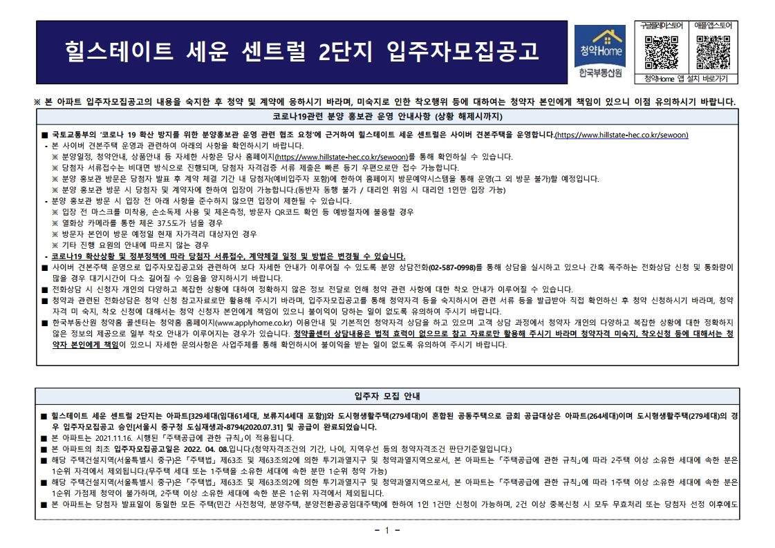[모집공고] 힐스테이트 세운 센트럴 1단지 2단지 분양가 본문