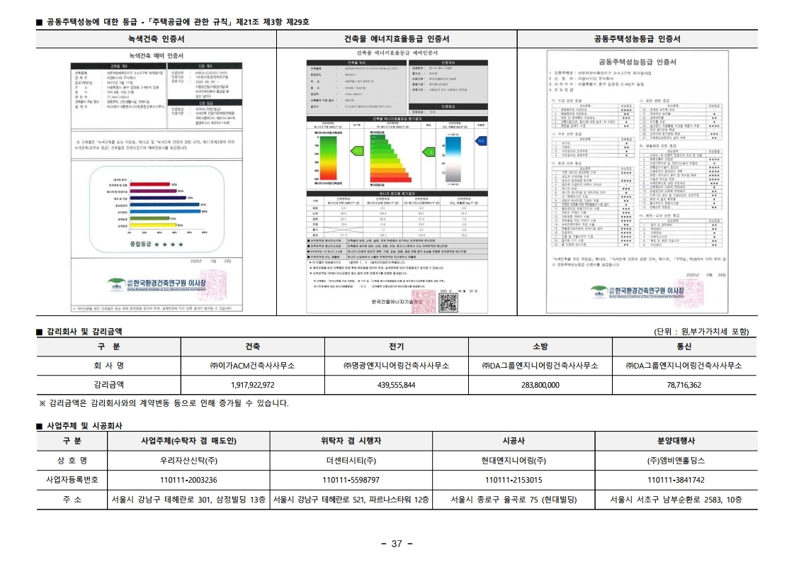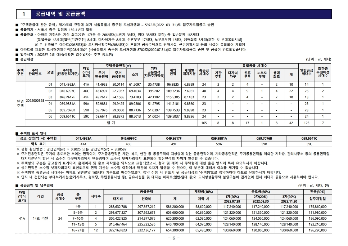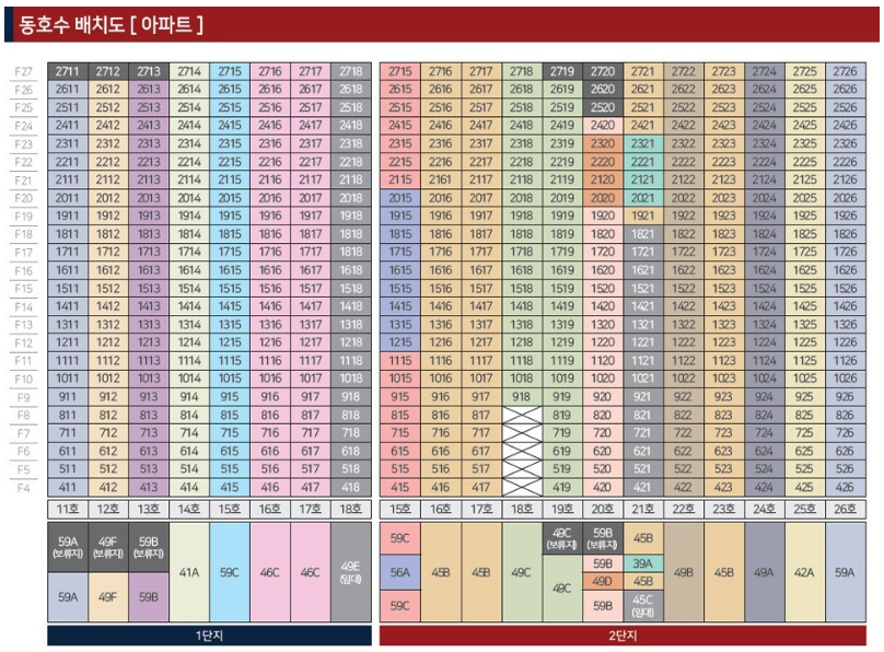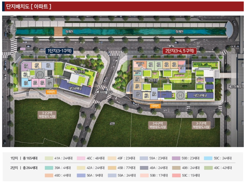 규모 : [1단지] 지하 8층 ~ 지상 27층 1개동, 총 414세대 중 아파트 165세대