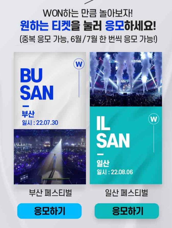 원하는 티켓을 눌러 응모하세요!