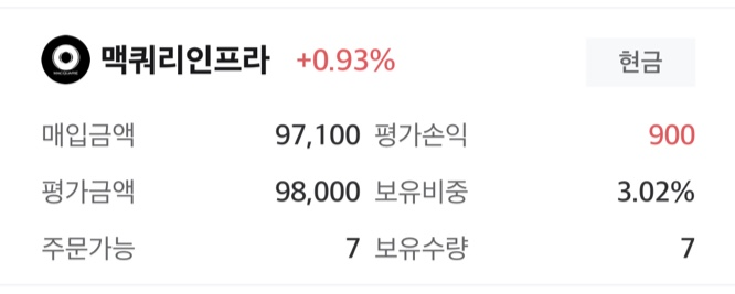 그 결과 지금까지 5천 포인트를 7번 출금하였고, 맥쿼리인프라 7주를 모을 수 있었습니다.