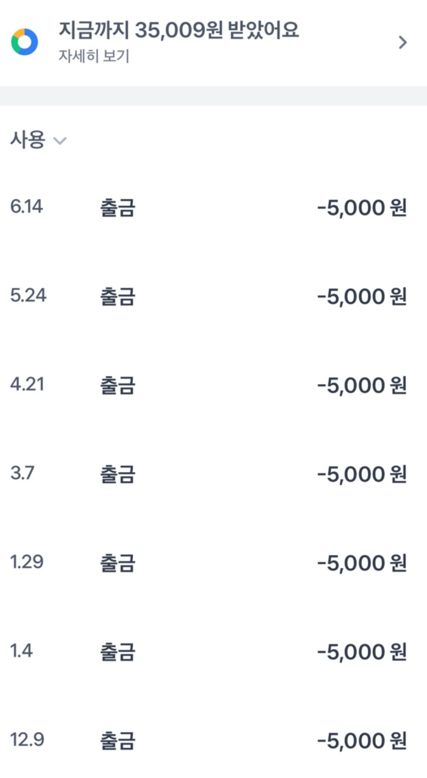 이렇게 5000원씩 출금한게 이번이 7번째가 되었습니다.