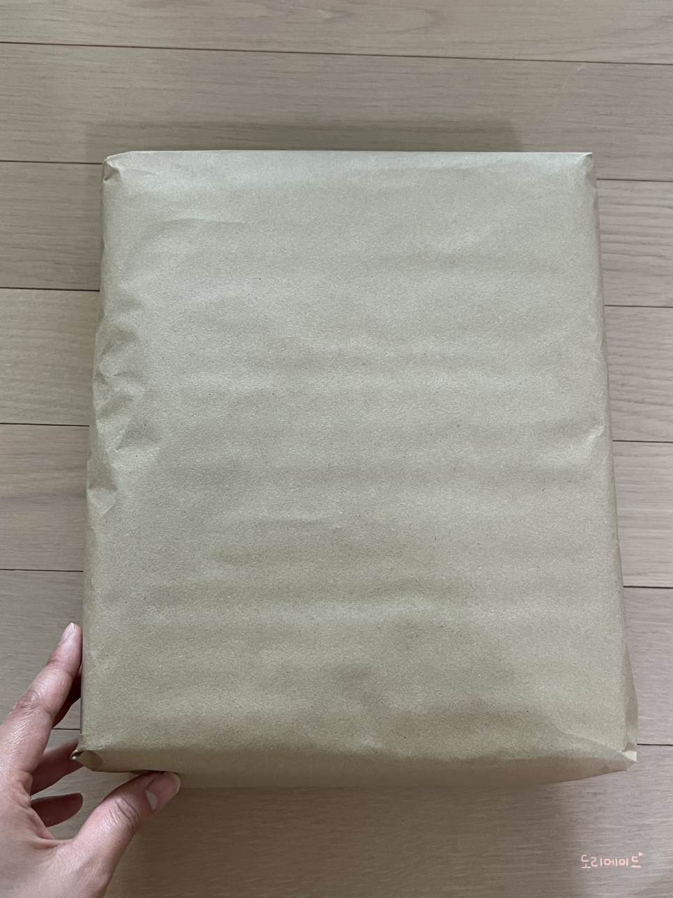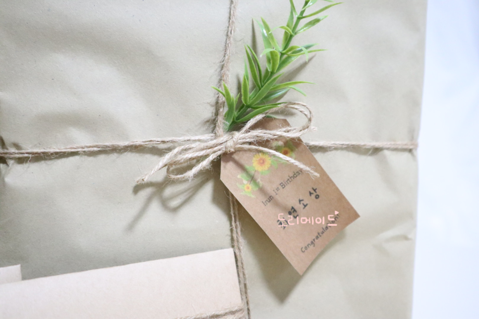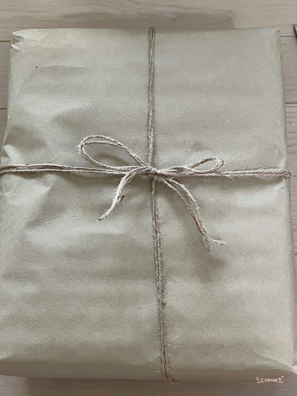 크라프트 포장지로 사각형 모양으로 예쁘게 포장해주었어요.
