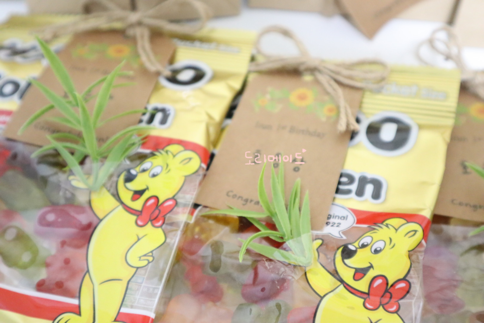 호응상 하리보 젤리에는 간단하게 마끈과 네임텍으로 포장을 했습니다.