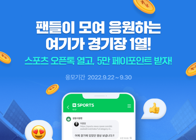 [당첨자 발표] 스포츠 오픈톡 열고, 5만 페이포인트 받자!