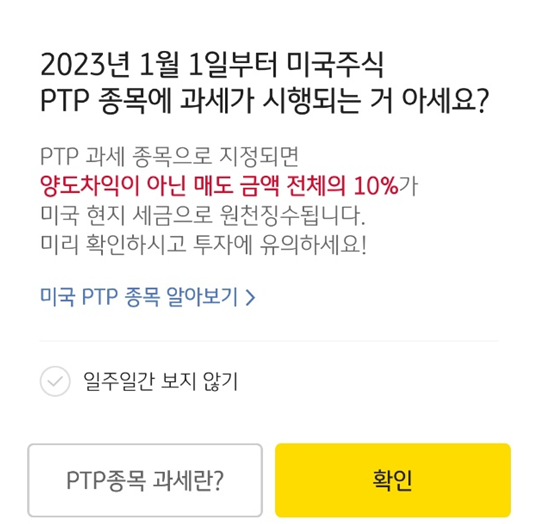 2023년 1월 1일부터 미국주식 PTT 종목에 과세가 시행된다는 내용입니다.