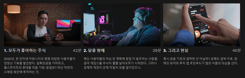 이번 다큐를 보면 게임스탑 주가폭등사건의 전개 과정과 배경, 그 후 이야기를 알 수 있습니다.