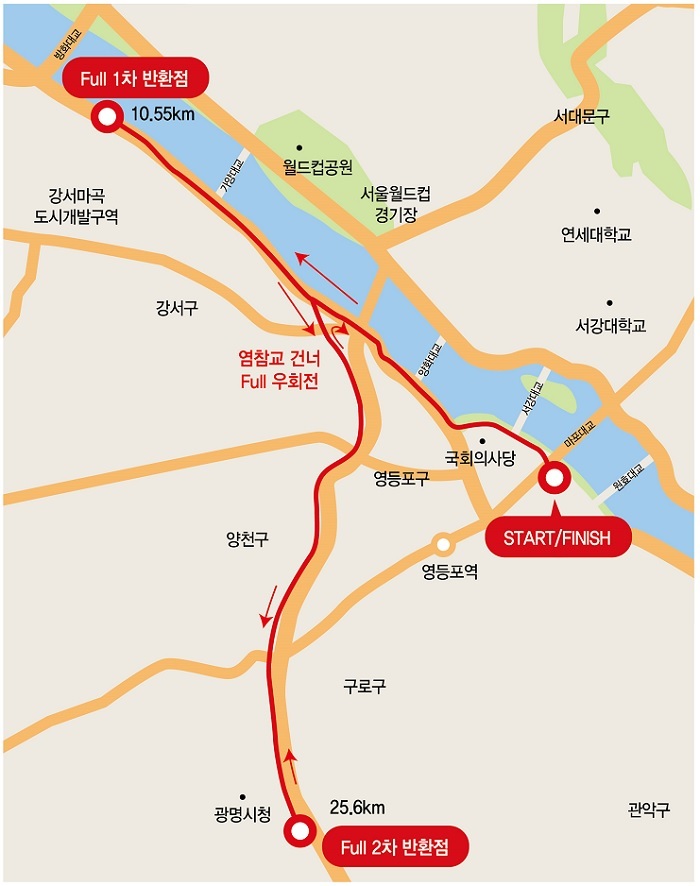 대회코스 4종목(풀코스, 하프, 10km, 5km)