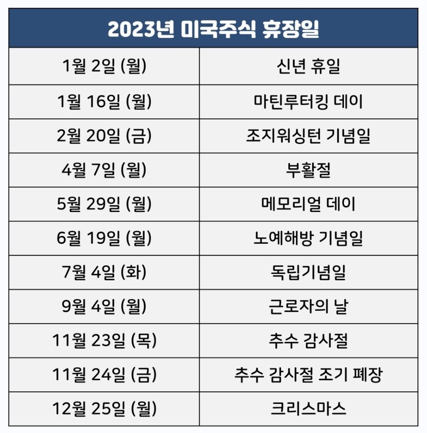 #2023년 #미국주식 #휴장일