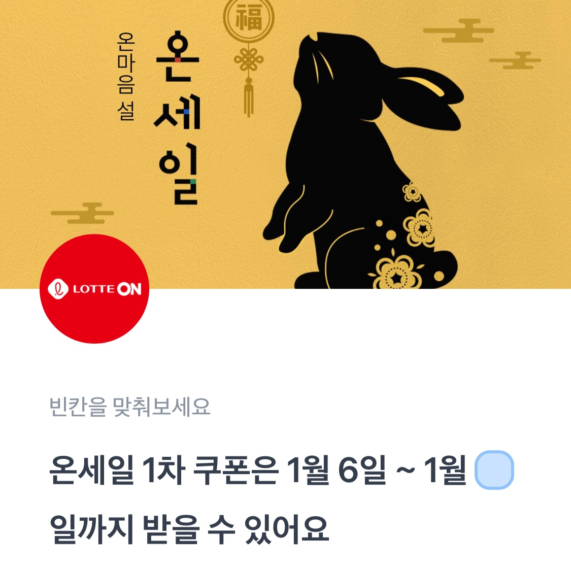 온세일 1차 쿠폰은 1월 6일 ~ 1월 O일까지 받을 수 있어요.