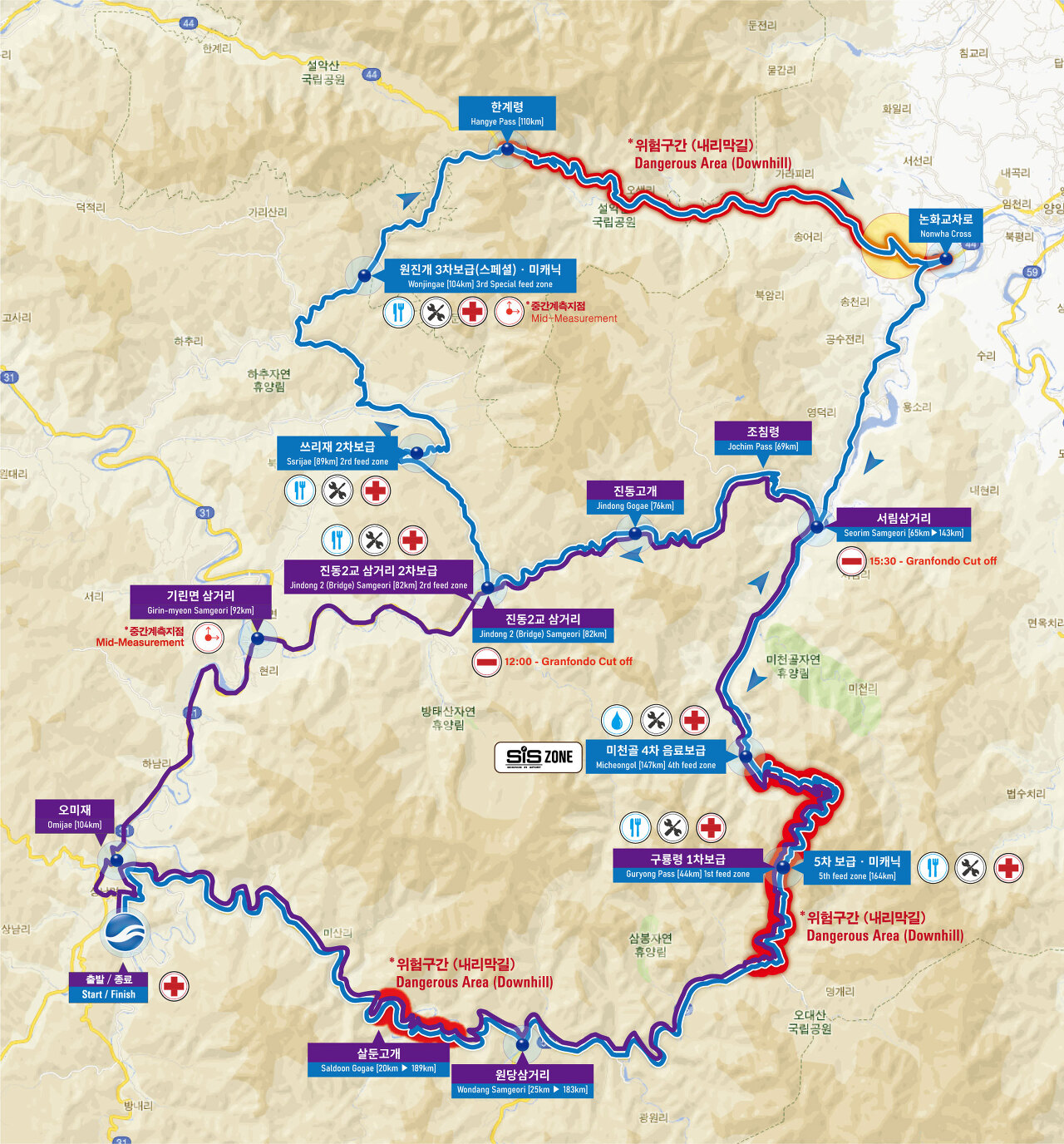 자타공인 우리나라 최고의 그란폰도 대회인 만큼 코스 또한 타대회와는 차별화된 구성으로 되어있다.