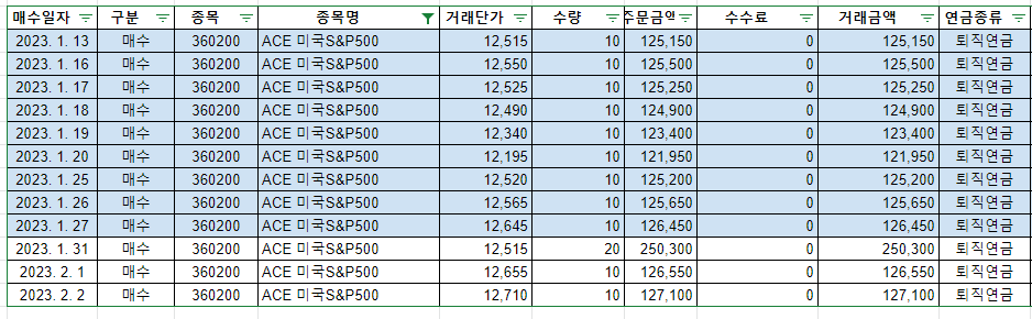 그럼 IRP계좌의 매수 거래내역을 살펴보겠습니다.