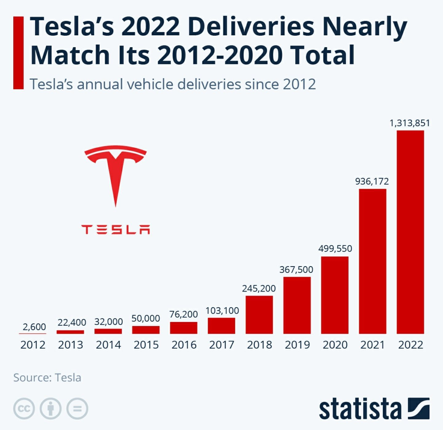테슬라의 2012-2020까지 차량인도량입니다.