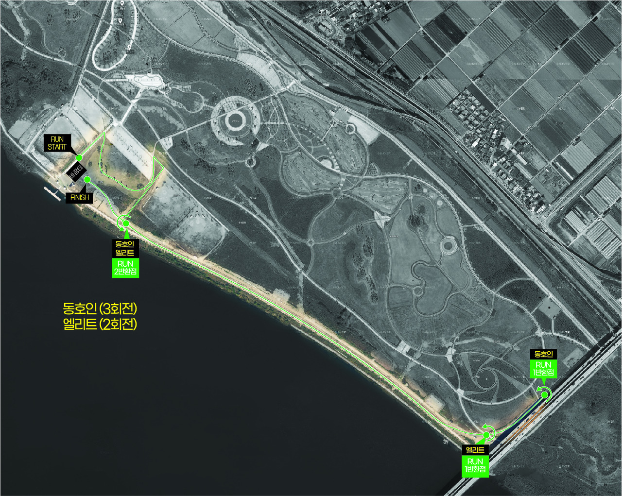| 동호인(AGE)부 | 스탠다드 | 수영(swim)1.5km, 사이클(bike) 40km, 달리기(run) 10km |
