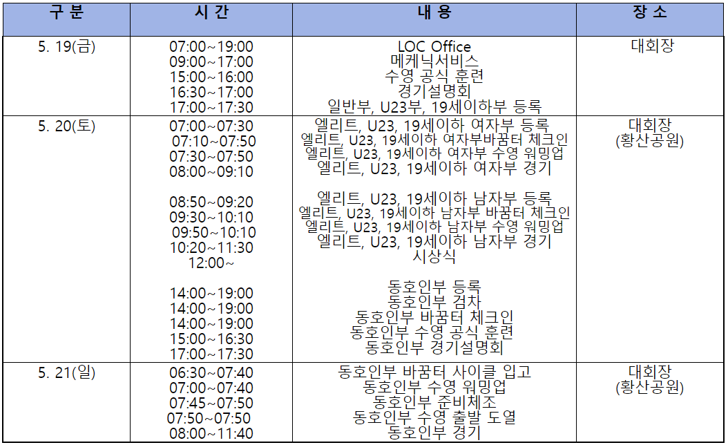 | 구 분 | 종 목 | 대회코스 |