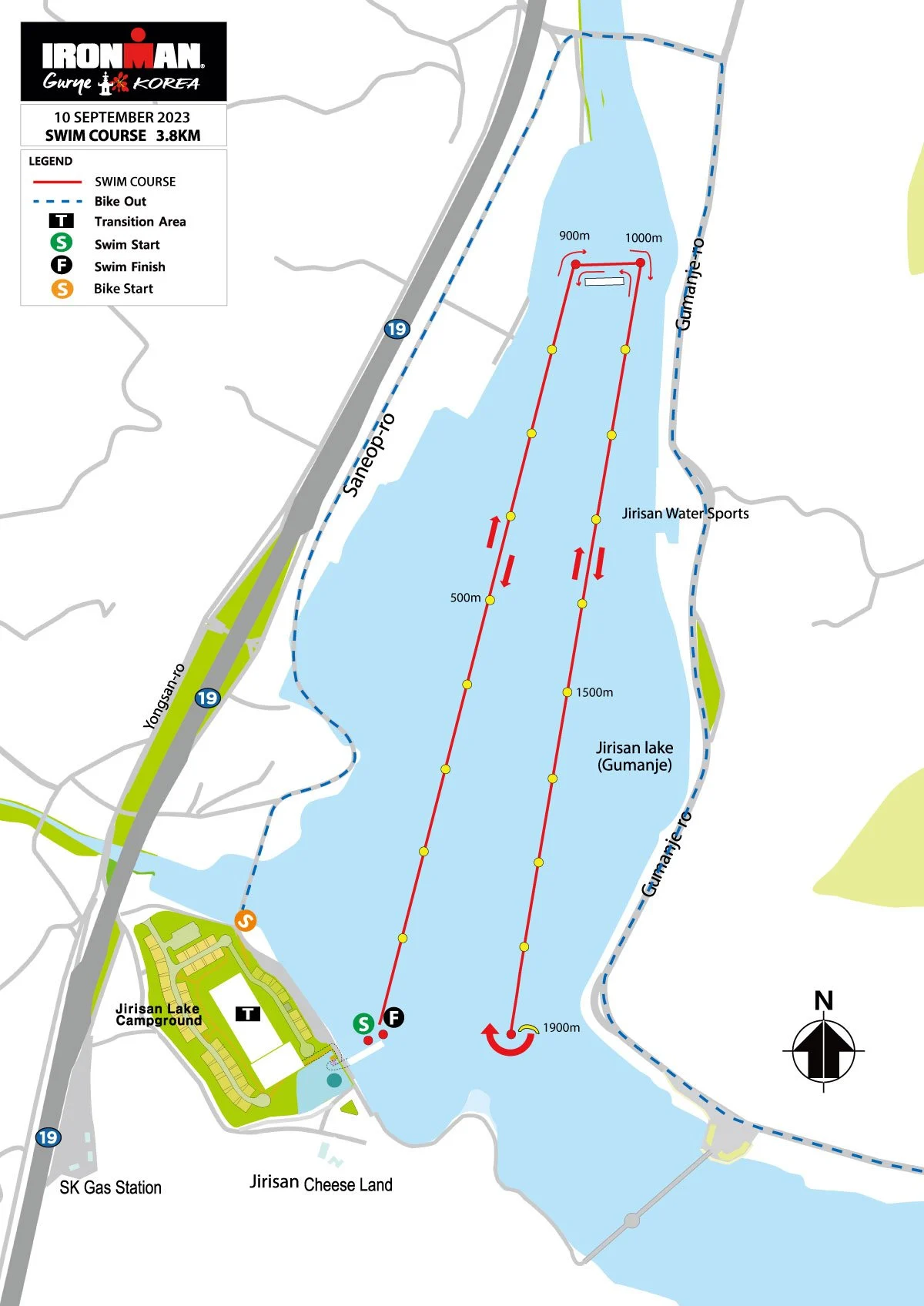2023 구례 아이언맨 수영 코스 맵입니다.