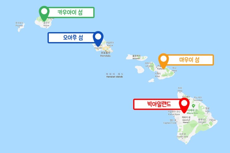 왜냐하면 실제 하와이는 크게 4개의 섬으로 이루어져있기 때문입니다.