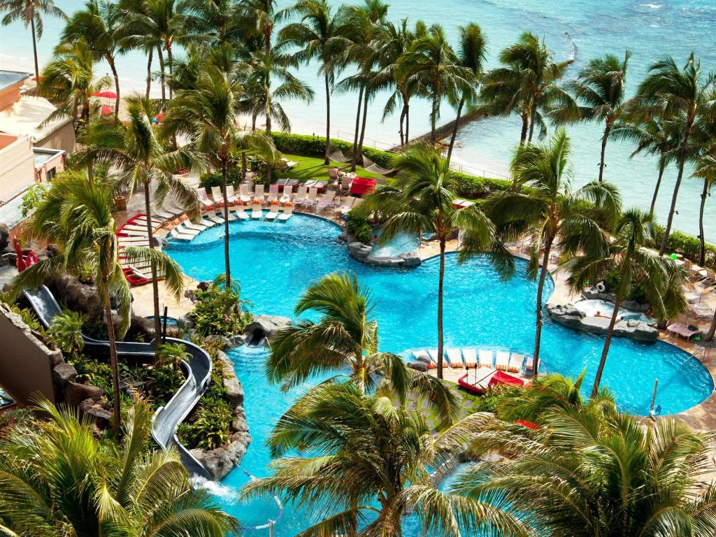 이 호텔은 와이키키 해변과 다이아몬드 헤드의 멋진 전망을 제공하는 해안가에 위치하고 있습니다. 피트니스 센터, 스파, 여러 레스토랑과 바, 수영장, 나이트클럽, 비즈니스 센터 등 다양한 편의 시설을 갖추고 있습니다.