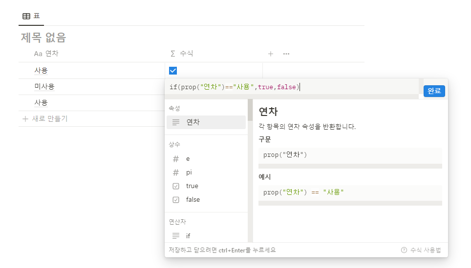 #노션 #notion #데이터베이스 #database #수식 #formula #조건 #연산 #논리 #문자열 #날짜 #시간