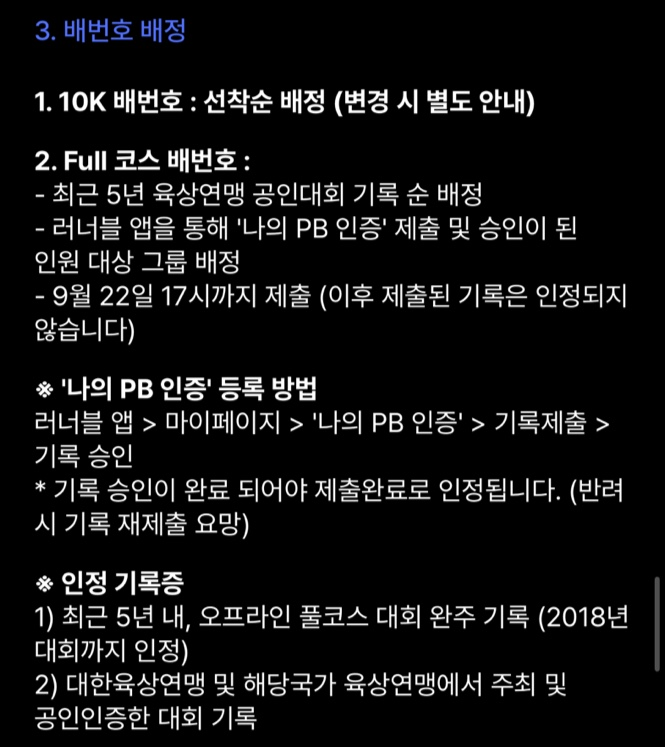 1. 10k 배번호 : 선착순 배정 (변경 시 별도 안내)