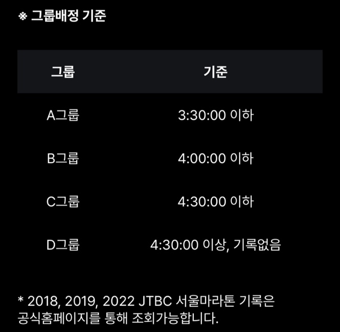 * 2018, 2019, 2022 JTBC 서울마라톤 기록은 공식홈페이지를 통해 조회가능합니다.