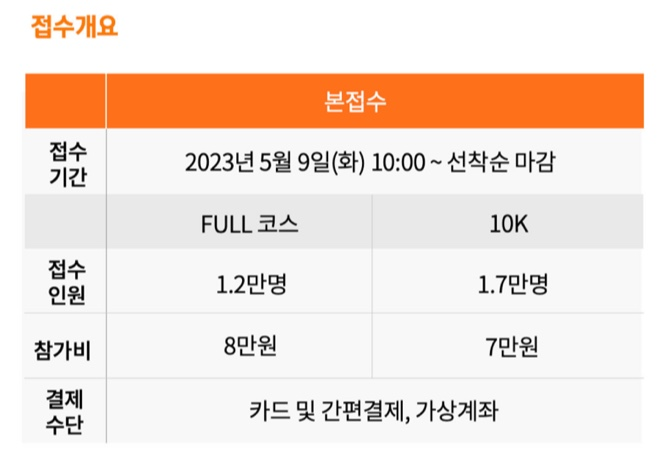 - 접수인원 : 1.2만명(Full) / 1.7만명(10K)