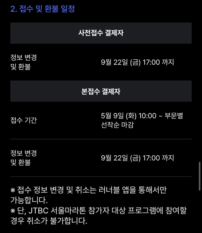 * 접수 정보 변경 및 취소를 러너블 앱을 통해서만 가능합니다.