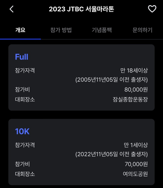 - 참가비 : 8만원(Full) / 7만원(10K)