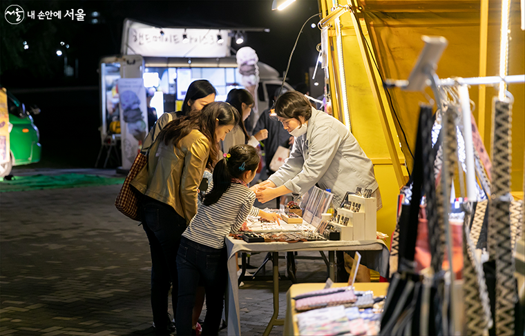 한강달빛야시장만의 특색 있는 먹거리와 수공예품을
