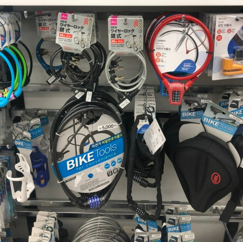 다이소 자전거용품 코너에 가보시면 정말 다양한 종류의 자물쇠를 볼 수 있습니다.