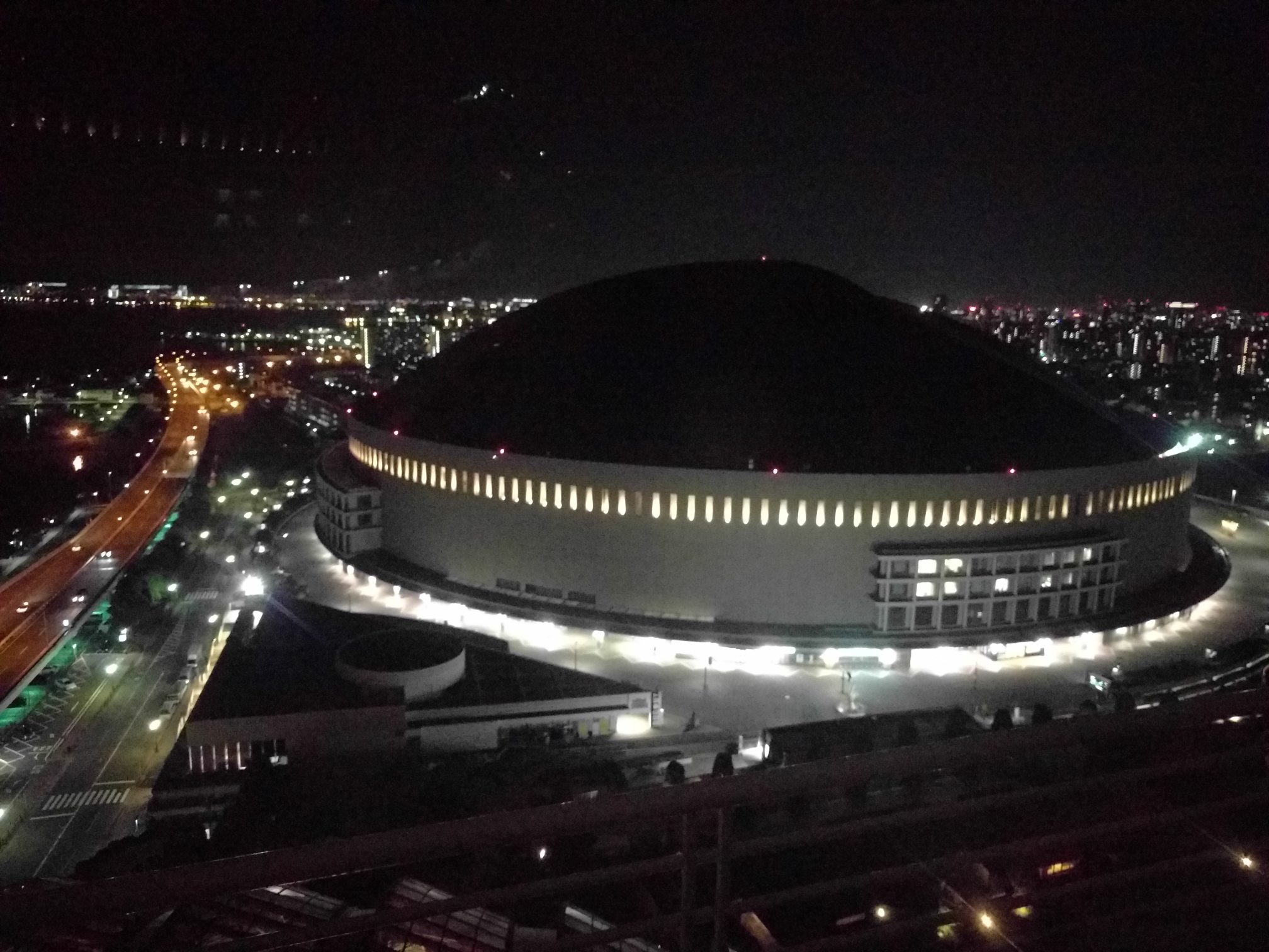 밤에도 조명을 비추고 있어서 후쿠오카돔의 멋진 야간 뷰를 감상할 수 있습니다.