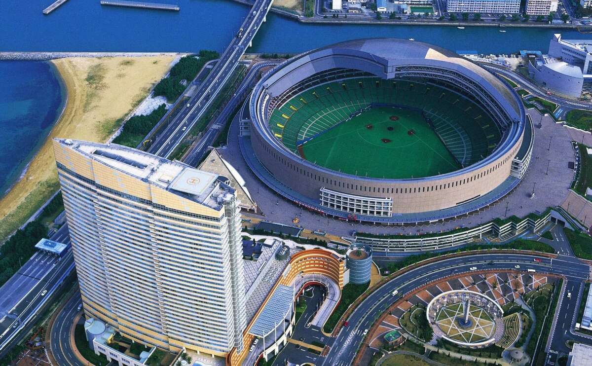 창문밖을 보면 후쿠오카돔 경기장이 정말 가깝게 볼 수 있습니다.