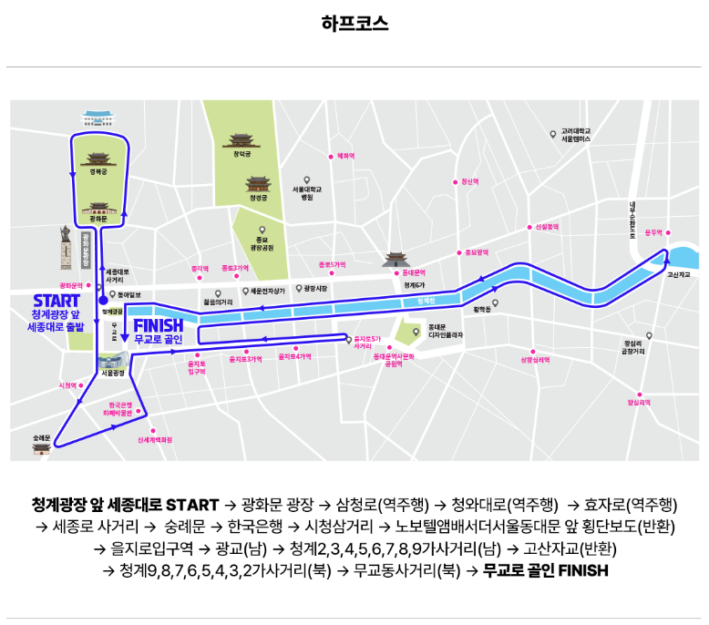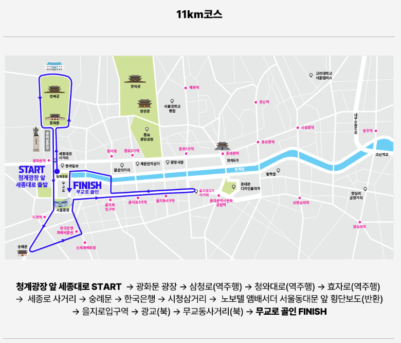 - 집결장소 : 청계광장(하프코스), 서울광장(11km 코스)