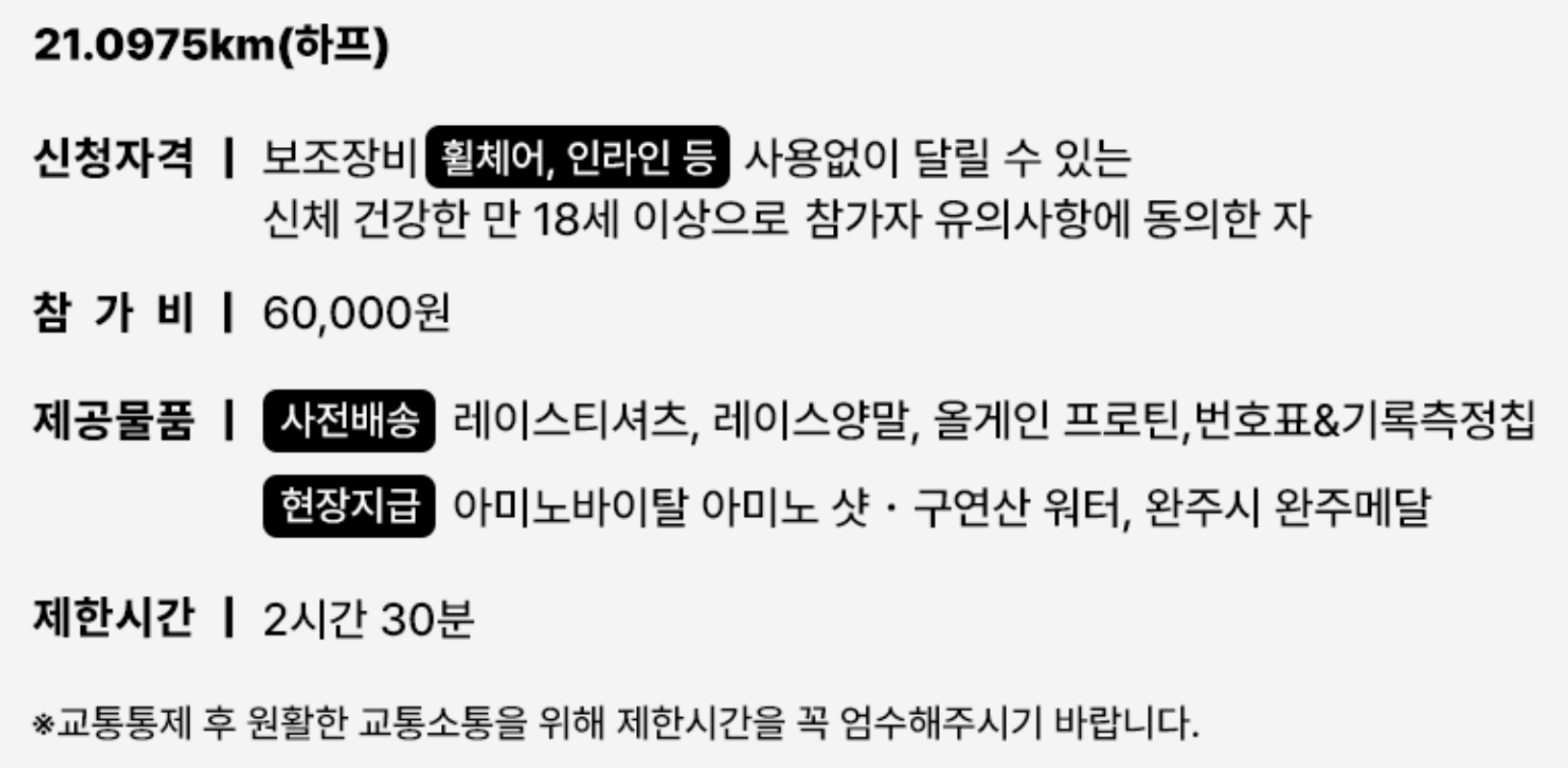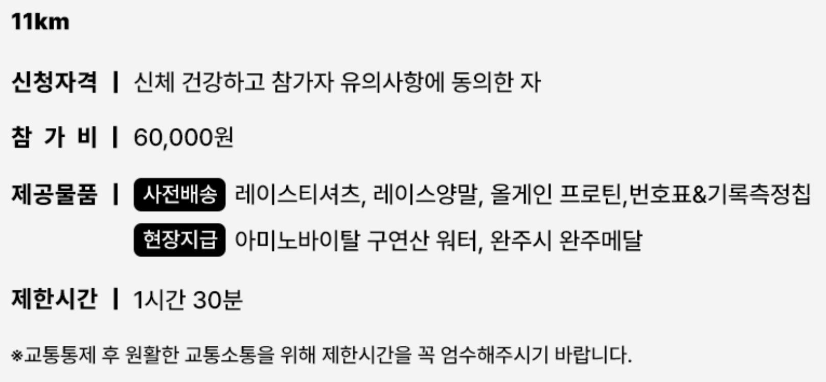 - 참가부문 : 하프코스, 11km코스