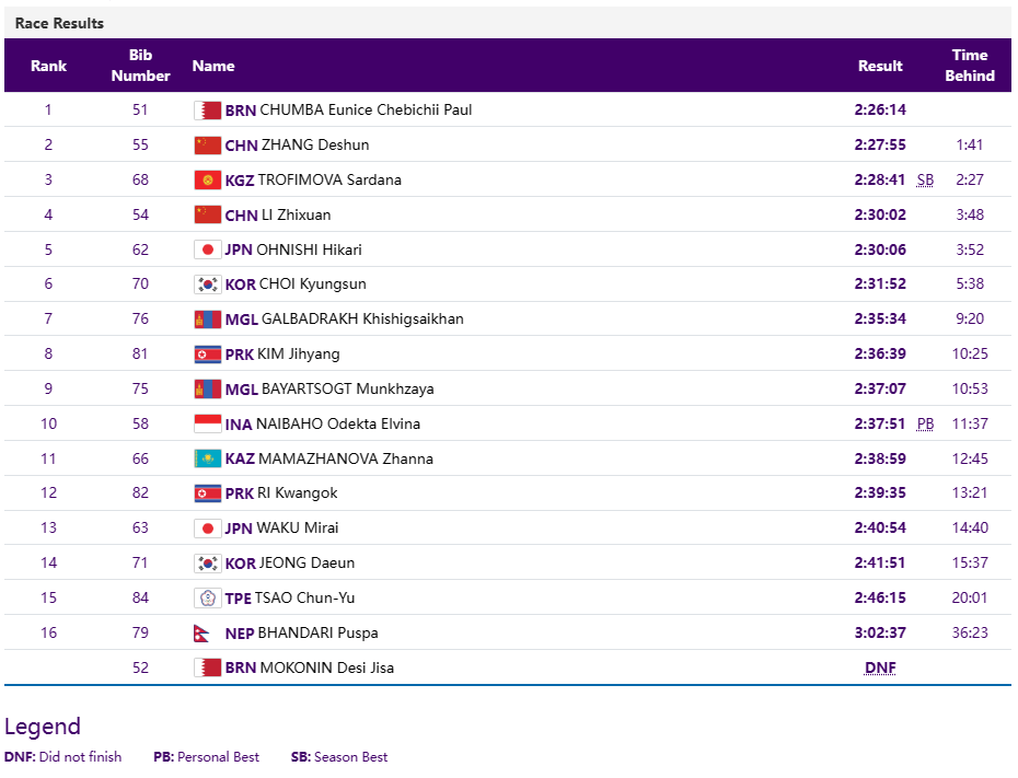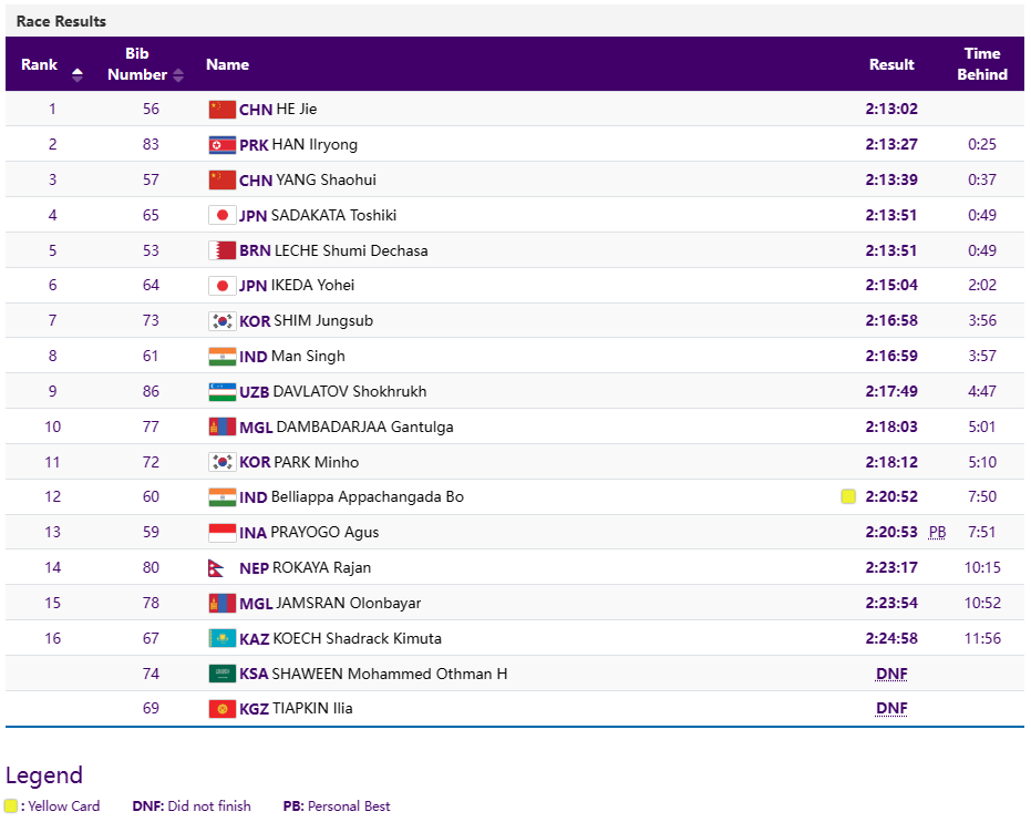 2023 항저우 아시안게임 마라톤 결승 결과 본문