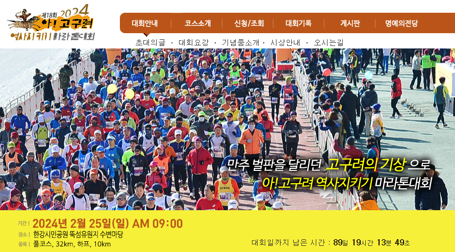 2024 제18회 아! 고구려 역사지키기 마라톤 | 대회접수방법 참가비 코스 기념품 본문