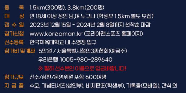 2024 서울시철인3종협회 철인 장거리 수영대회 | 참가비 접수방법 환불정책 본문