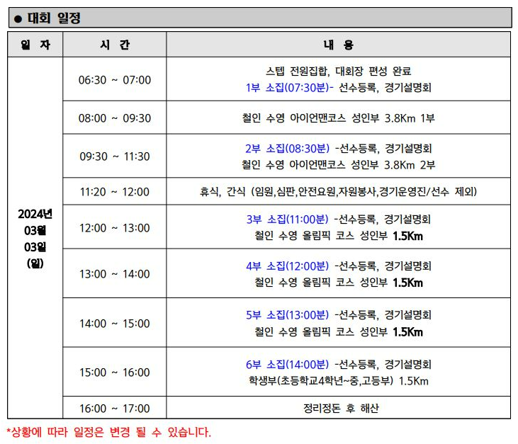 [철인3종] 2024 대회목록 (출처 : 대한철인3종협회) / 2024 구례아이언맨 대회일정