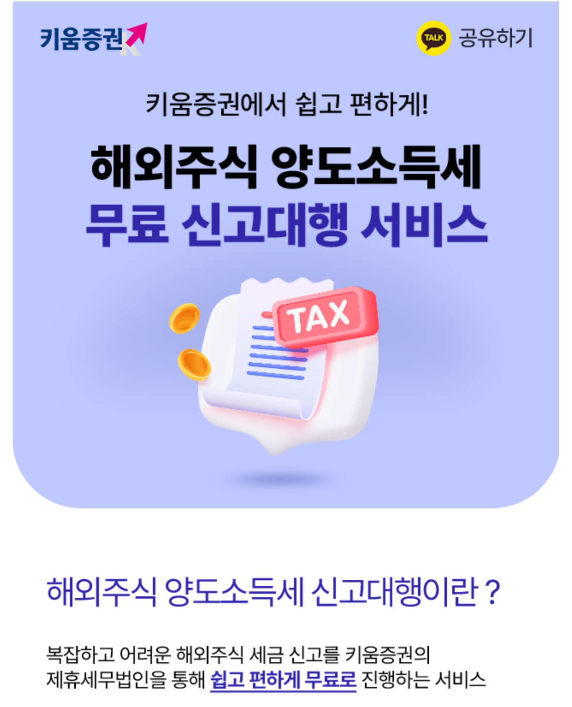 #키움증권 #해외주식 #양도소득세 #신고대행 #대상자 #신청방법 #기간 #세무신고 #양도세 #미국주식