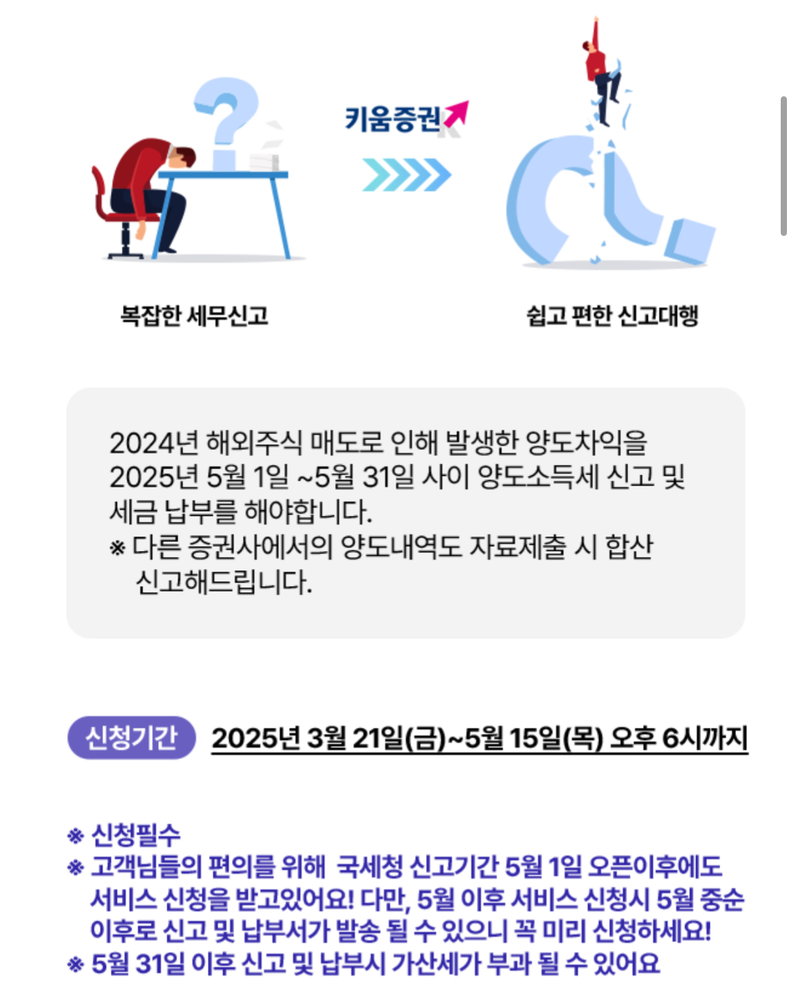 복작하고 어려운 해외주식 세금 신고를 키움증궈의 제휴세무법인을 통해 쉽고 편하게 무료로 진행하는 서비스