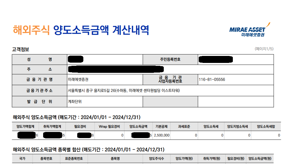 #미래에셋증권 #해외주식 #양도소득금액 #서류발급방법 #타증권사내역 #제출 #미국주식 #양도세 #pdf다운로드 #신고서 #납부서