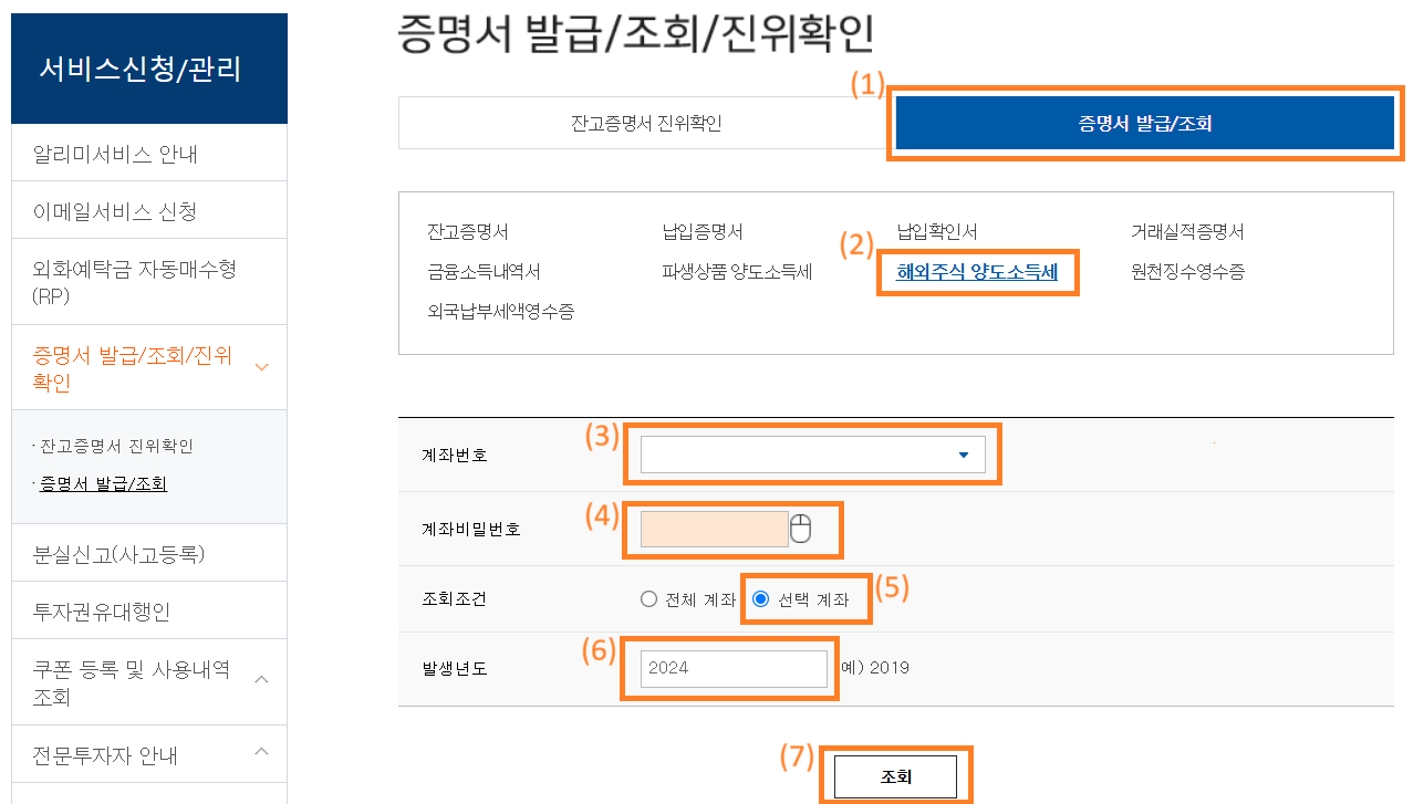 "해외주식 양도소득세" 서류 발급받기