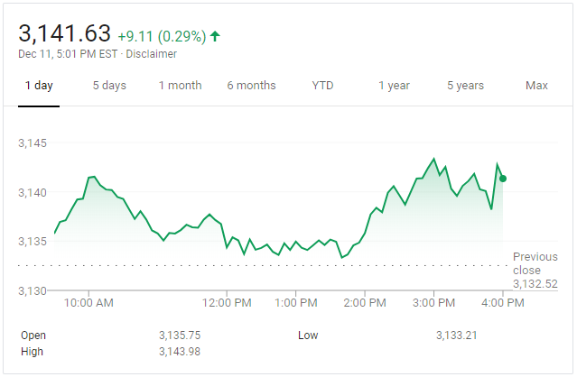 파월 의장은 이날 FOMC 직후 기자회견에서 "금리를 인상하려면 지속적이고 상당한 수준의 인플레이션(물가상승률)이 나타나야 한다"며 당분간 금리를 올릴 뜻이 없다는 뜻을 밝혔다. 이날 미 노동부 발표에 따르면 지난 11월 미국의 소비자물가지수(CPI) 상승률은 전월 대비 0.3%로, 전월(0.4%)보다 낮아졌다.