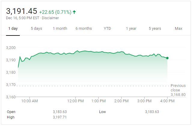 대형주 위주의 S&P(스탠다드앤푸어스) 500 지수는 22.65포인트(0.71%) 뛴 3191.45, 기술주 중심의 나스닥종합지수는 79.35포인트(0.91%) 급등하며 8814.23에 마감했다.